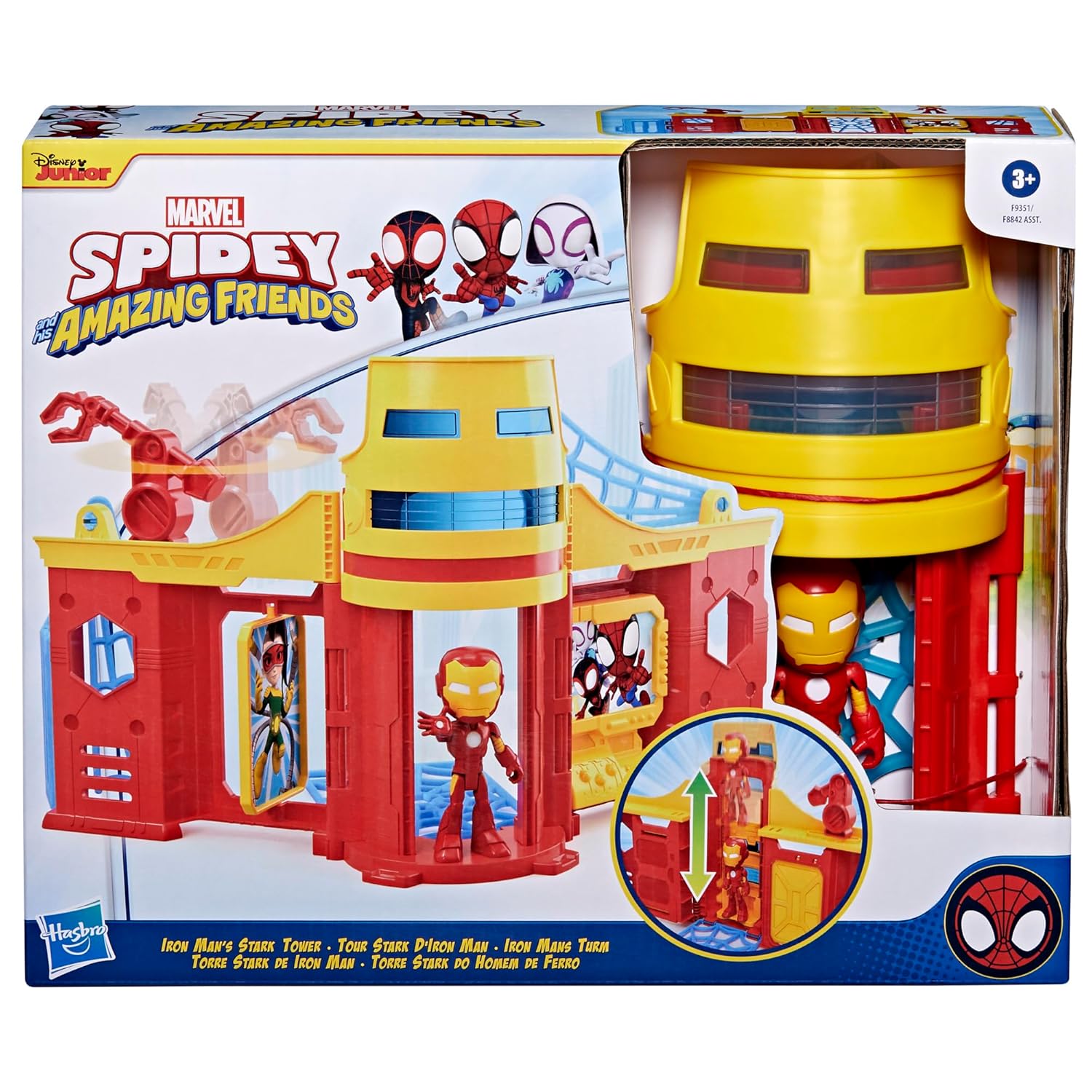Il playset Stark Tower di Marvel Spidey and His Amazing Friends è un grande set con torre giocattolo interattiva, ispirato alla serie animata di successo di Disney Junior. Bambini e bambine dai 3 anni in su possono fingere di trovarsi nel fantastico quartier generale del personaggio Iron Man grazie alle molteplici funzionalità offerte dal playset! I piccoli in età prescolare vengono stimolati a usare la loro fervida immaginazione per inventare storie proprie o ricreare le scene preferite delle figure della serie Marvel del Team Spidey e di Iron Man contro i cattivi! Il playset contiene una action figure da collezione del Supereroe Iron Man in scala da 10 cm per un fantastico gioco ricco di azione e di avventura (altre action figure dei personaggi vendute separatamente, secondo disponibilità). I giochi ispirati ai fumetti e ai film Marvel, sono un’ottima idea regalo per bambini e bambine da 3 anni in su che amano le avventure eroiche del Team Spidey.