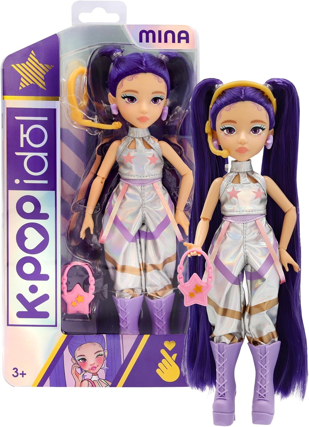 - Divertente momento unboxing: apri la scatola per scoprire i caratteristici capelli viola di Mina, il suo outfit pronto per il palco e uno stile unico ispirato al mondo K-pop.