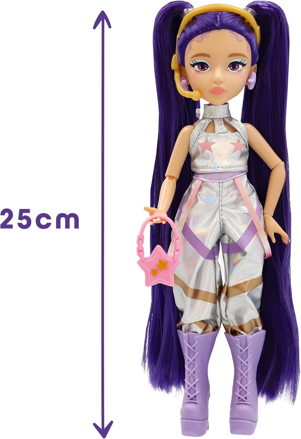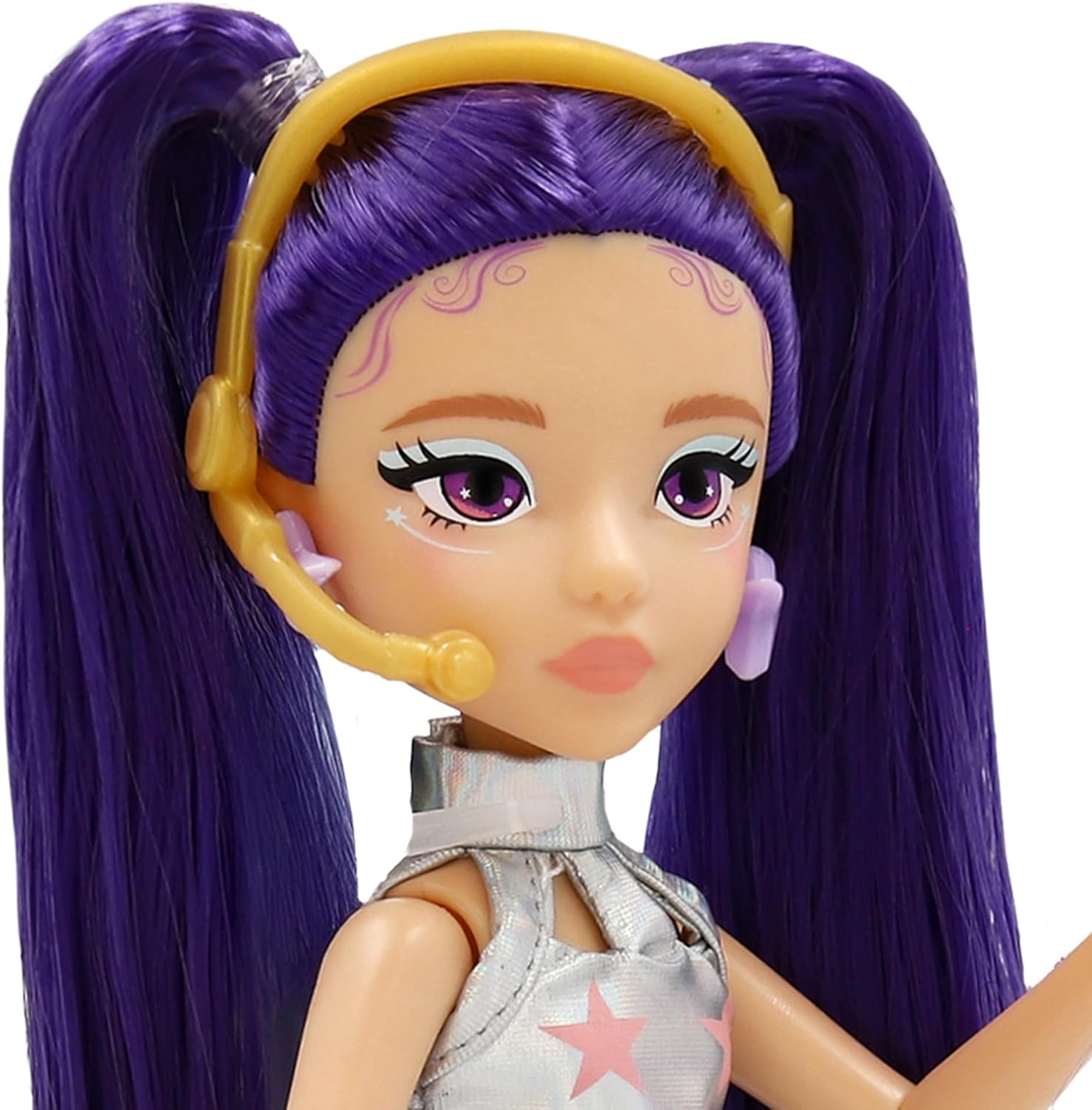 - Fashion doll ispirata al K-pop: la sicura leader del gruppo e voce principale, con lunghi capelli viola in due codini e un audace look da star K-pop.