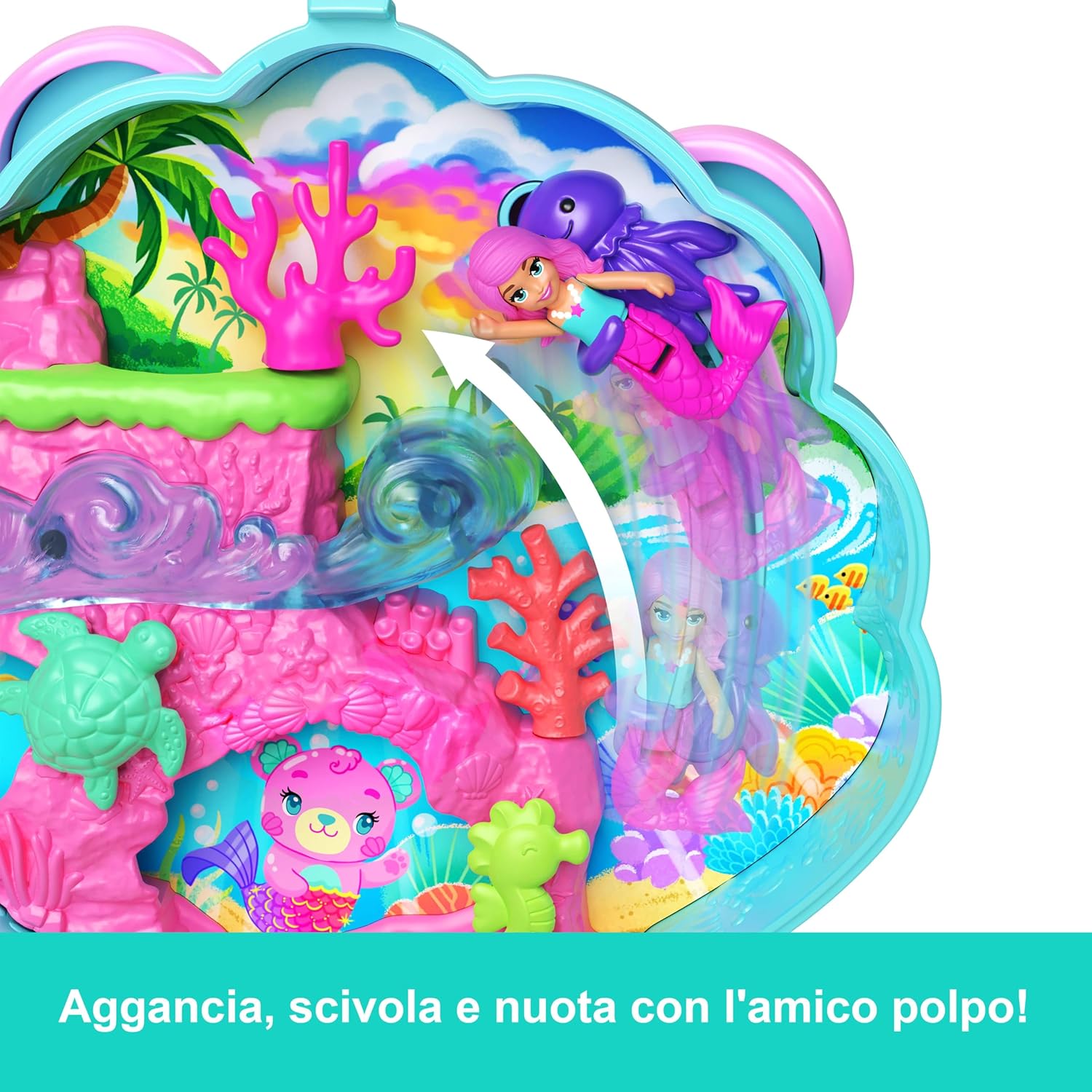 • Una fantastica giornata in spiaggia! Questo cofanetto Polly Pocket Glitter Island è dotato di una micro sirena e 11 accessori, inclusi gli animali.