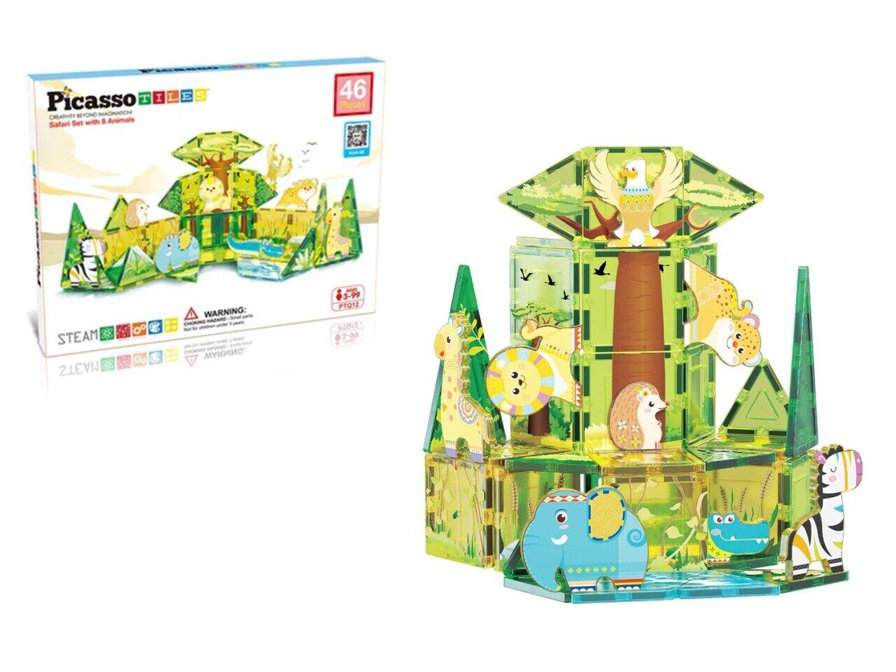 Picasso Tiles Costruzioni Magnetiche Set Safari con 8 Animali 46 pezzi