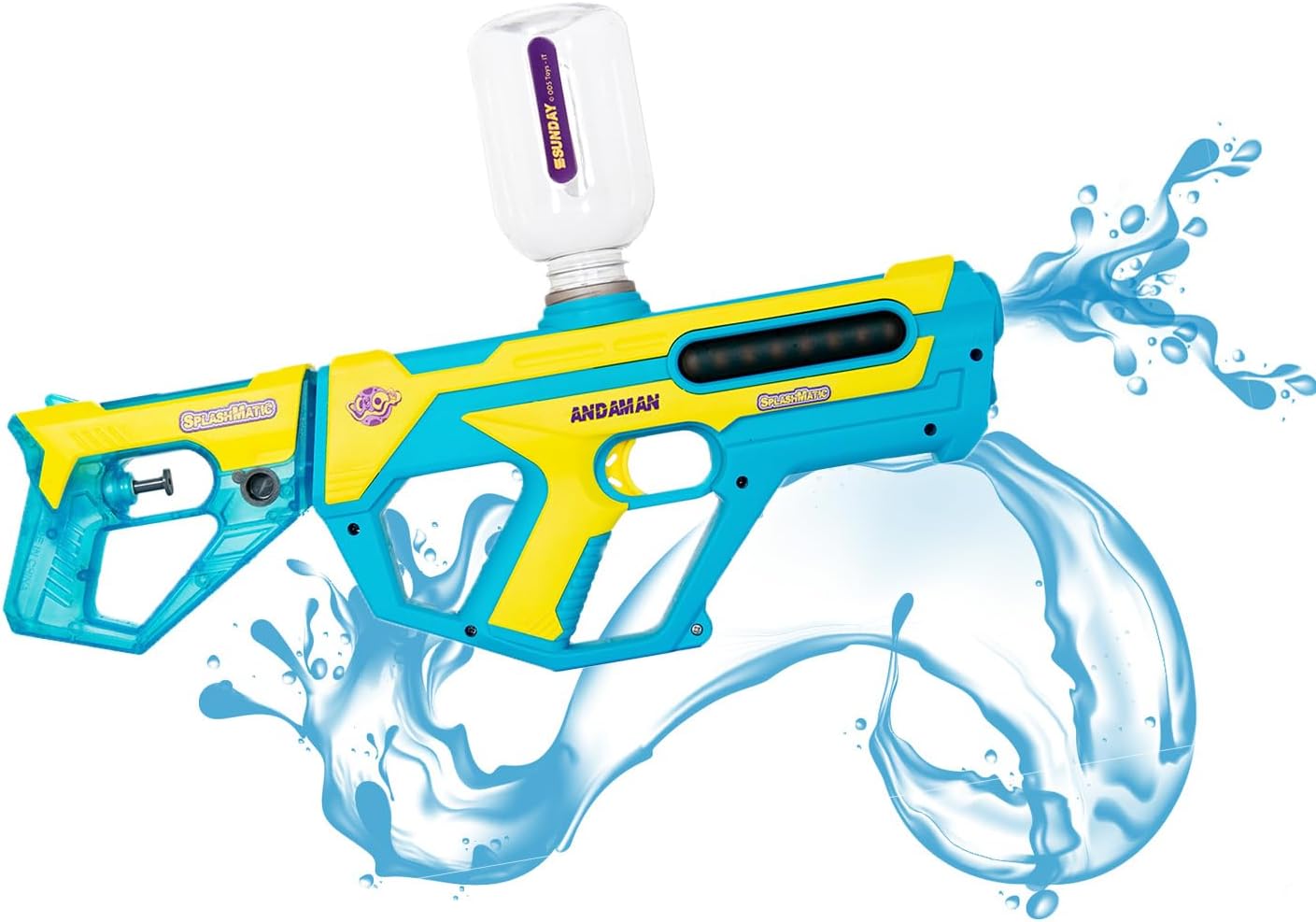 Splashmatic – Andaman Spara acqua 2 in 1, funzionante a batteria e con luci frontali e laterali. Calcio estraibile utilizzabile come pistola. Capacità 300 ml. Sistema di ricarica batteria: USB-C. Cavo di ricarica incluso. Gittata di 8 mt. 2 pistole in 1. Una con funzione elettrica per una potenza di lancio assoluta e continua. L’altra, nel momento in cui si stacca dalla pistola principale, diventa una comune pistola ad acqua con cui continuare la sfida tra amici. Nuova modalità di ricarica semplificata con presa USB-C. Giochi colorati e luminosi, perfetti per stimolare alla creatività e ai giochi di ruolo. All’interno della confezione troverai spara acqua 2 in 1 con luci frontali e laterali. Sorprendi i tuoi amici con un regalo speciale; il divertimento è assicurato! Spara Acqua a batteria! Nuova era di Spara Acqua high tech per bambini, ragazzi e adulti! Prendi parte al divertimento e dai il via a divertentissime battaglie acquatiche tra amici e famigliari.