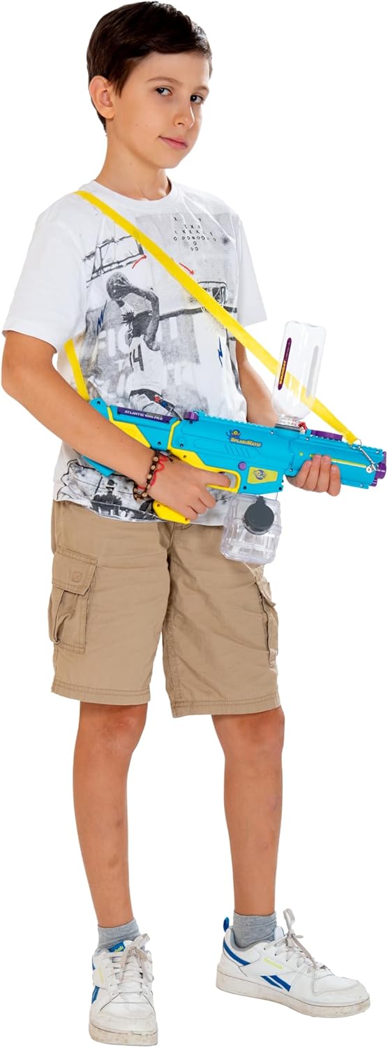 - SPARA ACQUA: 2 pistole in 1. Una con funzione elettrica per una potenza di lancio assoluta e continua. L’altra, nel momento in cui si stacca dalla pistola principale, diventa una comune pistola ad acqua con cui continuare la sfida tra amici. Nuova modalità di ricarica semplificata con presa USB-C.