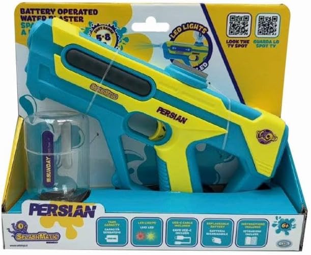 Preparati a vivere infinite avventure con lo SplashMatic Persian, il compagno di gioco ideale per i giovani avventurieri da 6 anni in poi. Questo spara acqua compatto e facile da maneggiare assicura divertimento garantito per tutti i piccoli guerrieri d’acqua. SplashMatic Persian è l’alleato perfetto nelle calde giornate estive. Con una lunghezza di soli 25 cm, è la pistola ad acqua ideale per mani piccole, garantendo una presa sicura e comoda. È dotato di una bottiglietta ricaricabile inclusa nella confezione, ma la vera rivoluzione è la possibilità di attaccare qualsiasi bottiglietta di plastica per una ricarica veloce e semplice, così la battaglia non finisce mai!