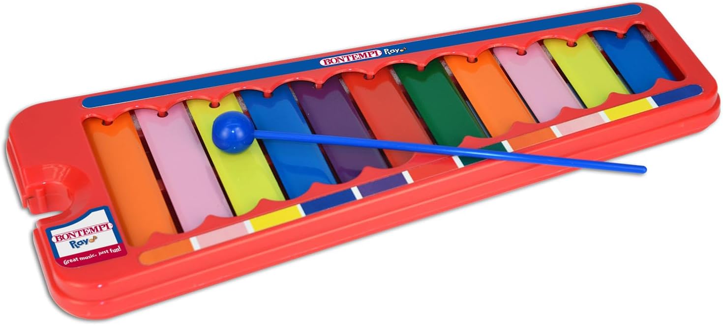Strumento musicale con 11 piastrine metalliche colorate, note dal sol al do, ideale per bambini. Include bacchetta per suonare facilmente le note colorate. Realizzato in plastica e metallo resistente per un uso duraturo e sicuro. Misura 31 cm di lato lungo, 12,5 cm di lato medio e 2 cm di lato corto per una comoda maneggevolezza. Perfetto per introdurre i bambini al mondo della musica e stimolare la coordinazione e l’orecchio musicale.