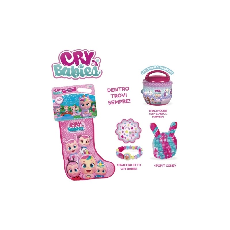 Calza della Befana Cry Babies con sorprese incluse ideale per bambine dai 3 anni Colore multicolor e dimensioni di 32x17x60 cm perfetta per l occasione Contiene una bambola esclusiva e dive