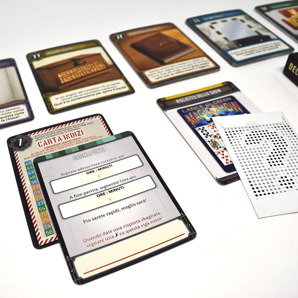 Deckscape è un gioco di carte che ricrea sul tuo tavolo l’esperienza di una vera escape room; giocalo dove vuoi, da solo o con gli amici. In Deckscape – Dietro il sipario siete invitati allo spettacolo di magia del grande mago Lance Oldman, che si terrà a New York. Gli autori di Deckscape hanno collaborato insieme a un vero illusionista per la creazione dei trucchi di magia da eseguire nel corso di questa avventura. Risolvi enigmi, giochi di logica e sfide di ogni tipo, trova e utilizza oggetti e scopri i retroscena della trama, insieme al tuo gruppo di gioco. Nessun regolamento: apri la scatola e inizia subito a giocare. Terminata la sfida, rimetti le carte in ordine numerico e il gioco è pronto per i prossimi giocatori. Più di un milione di copie vendute nel mondo per questa serie.