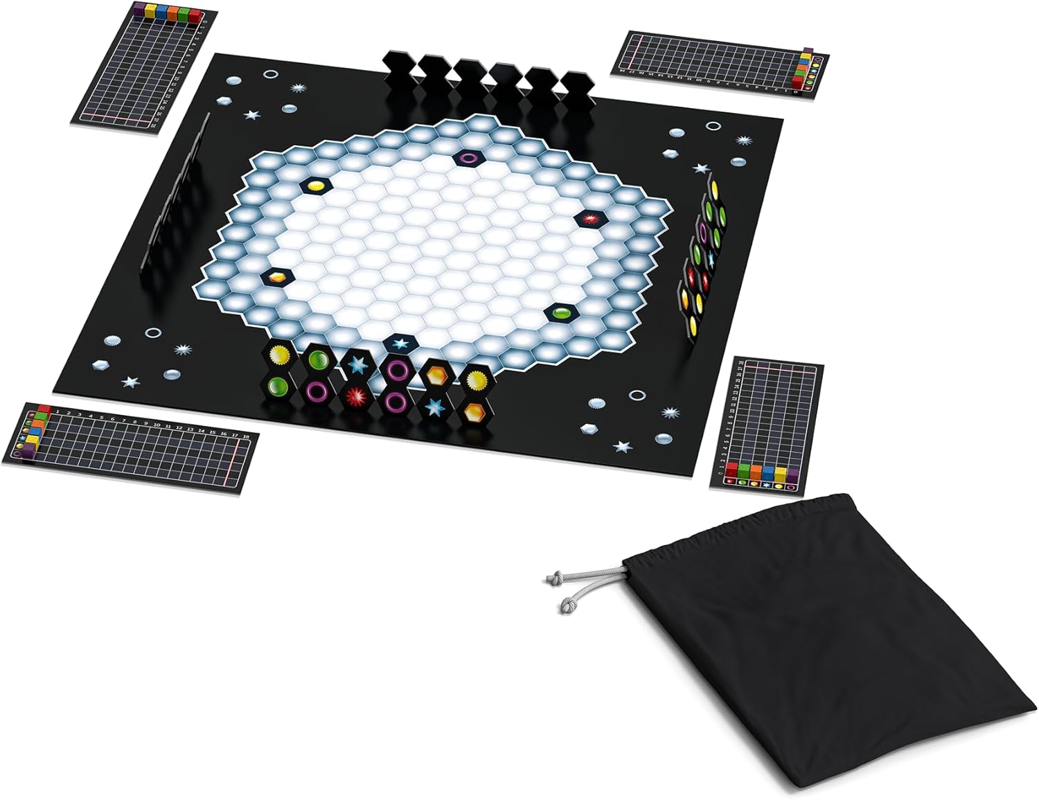 In Geniale!, i giocatori devono posizionare tessere colorate su un tabellone per guadagnare punti. Ogni tessera ha due esagoni con colori diversi, e, per ogni colore, il punteggio dipende da quante tessere adiacenti o in linea retta dello stesso colore ci sono. Con ogni piazzamento si ottengono punti per i colori della tessera posizionata. L’obiettivo è far crescere il punteggio in tutti i colori, perché la vittoria dipende dal punteggio più basso. Ogni giocatore ha sei tessere e, a turno, posiziona una tessera sul tabellone. Ogni tessera posizionata dà punti per ogni esagono dello stesso colore che si trova adiacente e in linea retta. Al termine della partita, il punteggio finale è quello del colore più basso, e chi ha più punti vince. Un gioco di strategia dove ogni scelta conta.