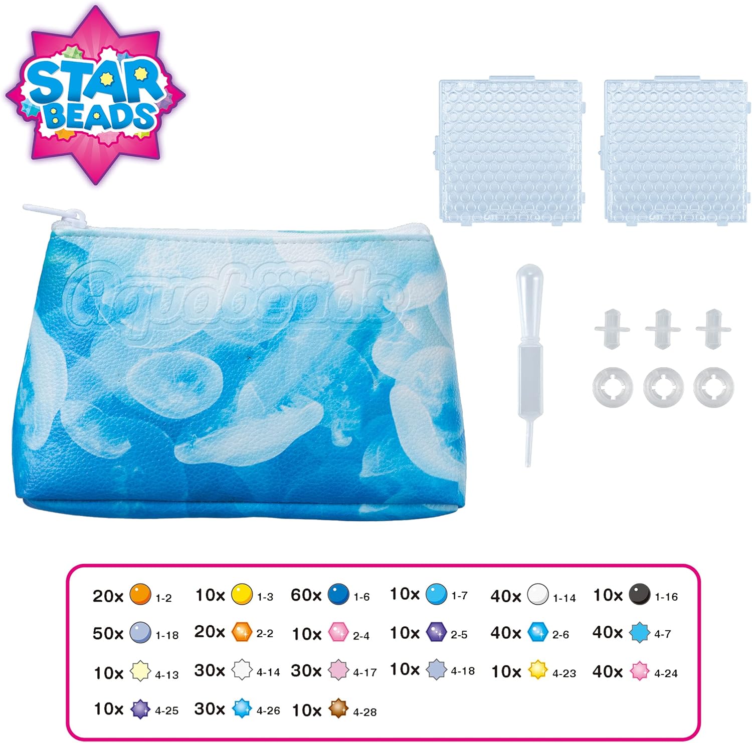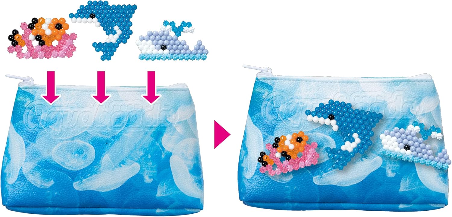 Aquabeads Borsa fai da te per decoratori, motivo onde blu con simpatici disegni di vita marina. Include oltre 500 perline solide, a forma di gioiello e a forma di stella in una varietà di colori. Le perline uniche a forma di stella aggiungono dimensione e consistenza ai disegni per dare vita alle tue creazioni di vita marina. Crea i tuoi disegni di perline seguendo i modelli e, dopo che si sono asciugati, attaccali alla custodia per creare opere d’arte da indossare. Utilizza la custodia per riporre i tuoi oggetti Aquabeads artigianali, materiale scolastico, oggetti personali e molto altro ancora!