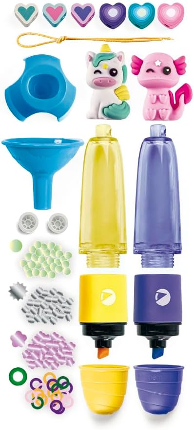 - CREATE YOUR HIGHLIGHTERS: un divertente kit per creare evidenziatori unici e e personalizzabili scegliendo colori e decorazioni a tema animali fantasy, tra unicorni e axolotl
