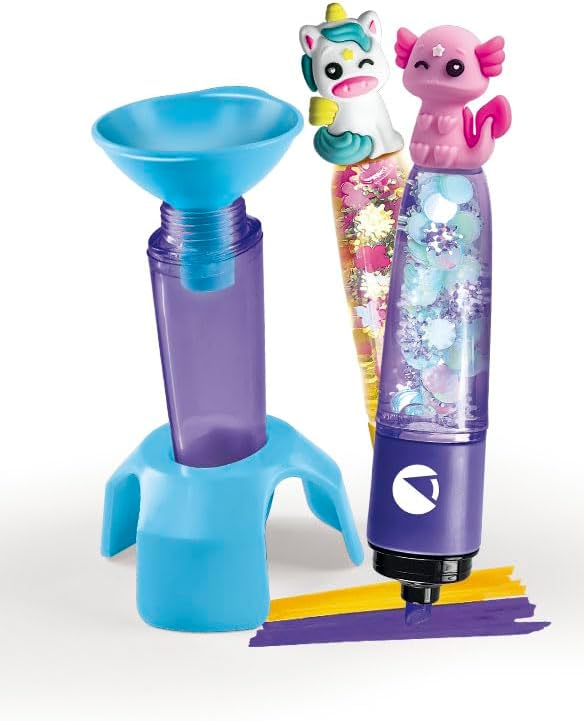 Un divertente kit per creare evidenziatori unici e e personalizzabili scegliendo colori e decorazioni a tema animali fantasy, tra unicorni e axolotl. Il set permette di creare evidenziatori customizzate, stimolando l’abilità artistica e la coordinazione occhio-mano, offrendo l’opportunità di scegliere tra tante combinazioni divertenti e originali. Combinando inchiostri, tappi e tante decorazioni si possono creare delle evidenziatori personalizzate e uniche, liberando fantasia e creatività. Gioco ideato, progettato e sviluppato in Italia, con 3 evidenziatori da decorare con tappi, cappucci, inchiostri, decorazioni iridescenti, perline, cordini elastici e 3 personaggi diversi, con manuale per guidare nella composizione. Una gamma di originali kit creativi progettati per sviluppare manualità e fantasia, mostrando le proprie abilità artistiche con creazioni di tendenza.