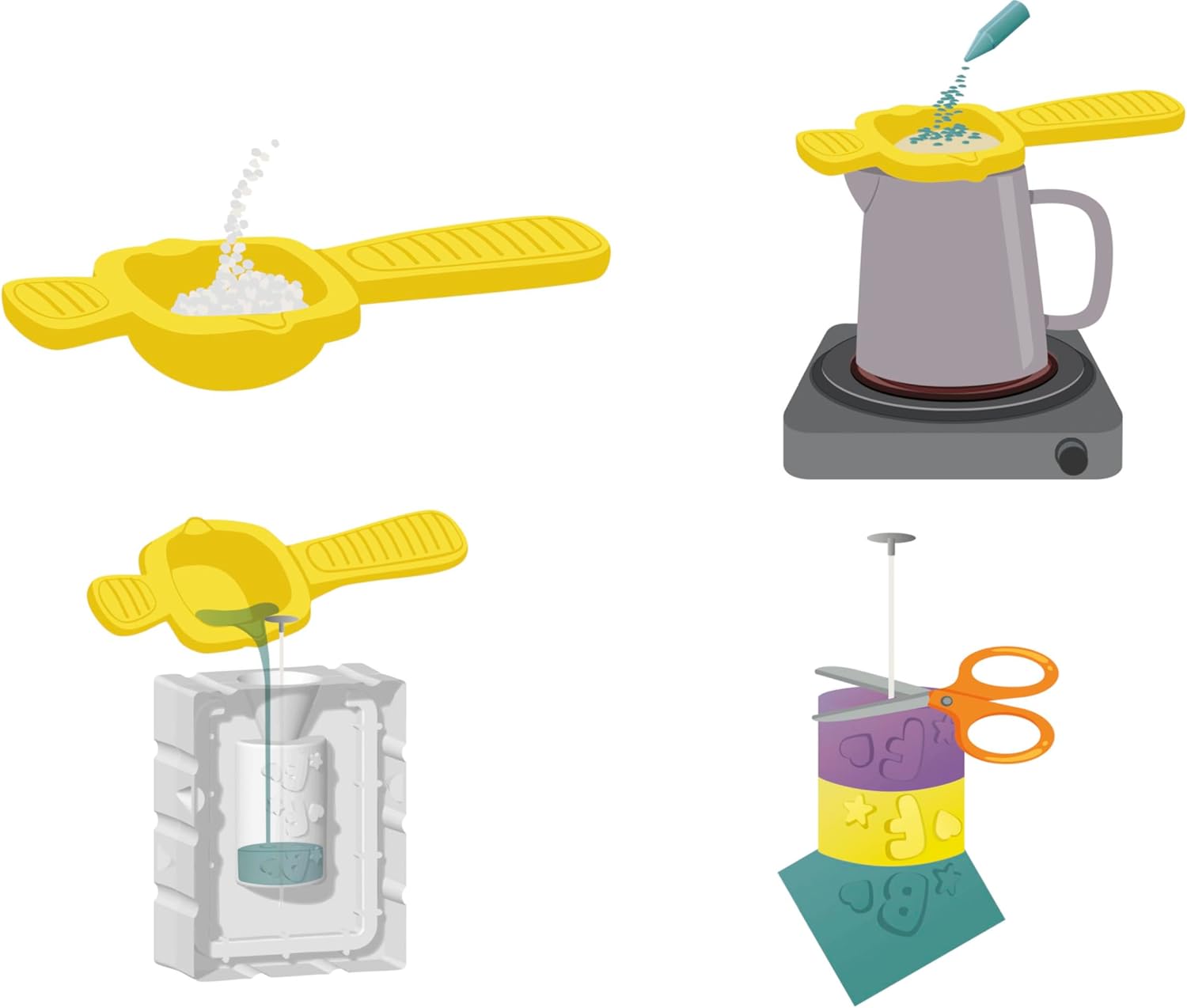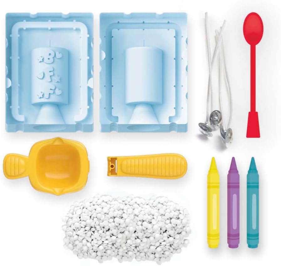 Un piccolo atelier creativo in casa. Il kit include paraffina, stampi, pastelli a cera, sigillatori e gli strumenti necessari per creare. Niente da aggiungere.