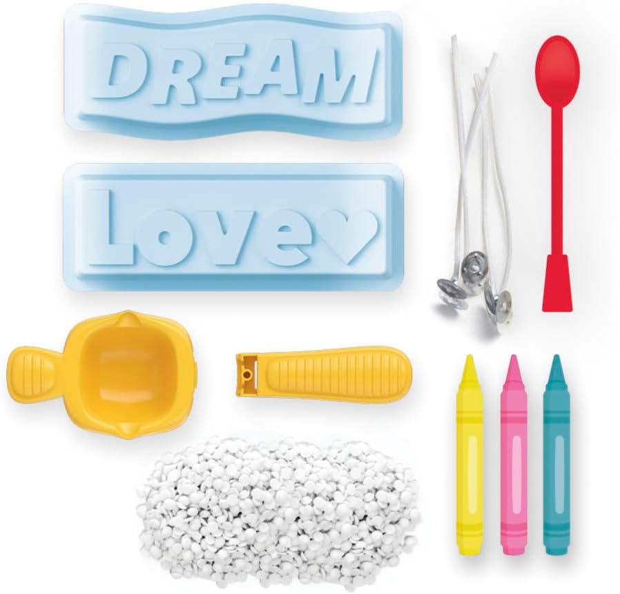 Un piccolo atelier creativo in casa. Il kit include paraffina, stampi, pastelli a cera, sigillatori e gli strumenti necessari per creare. Niente da aggiungere.