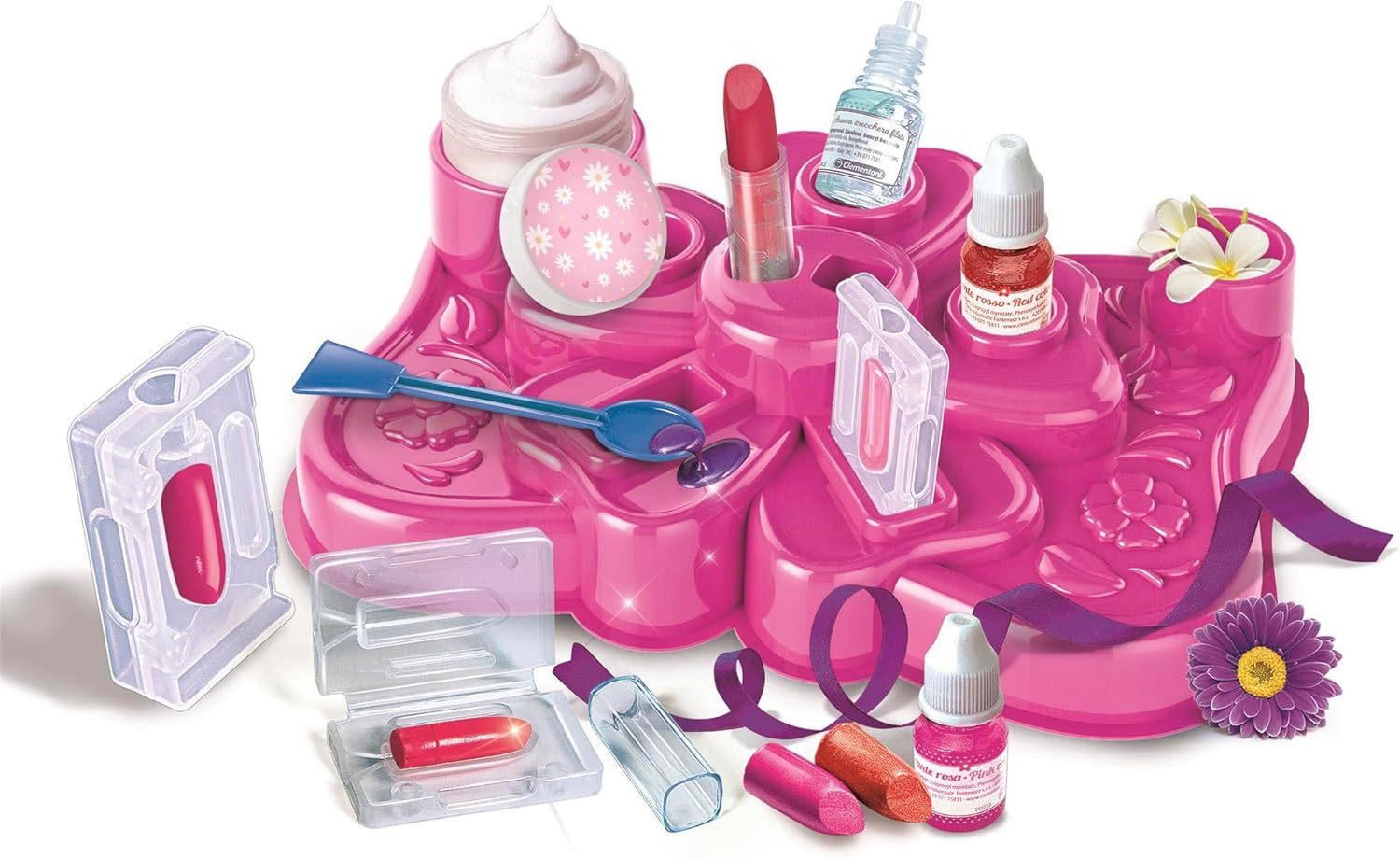 Tutto l’occorrente per creare rossetti profumati, con colori super brillanti e dolcissime fragranze; una borsetta speciale porta trucchi per contenere i tuoi lavori. Il set permette di creare rossetti personalizzati, stimolando l’abilità artistica e la coordinazione occhio-mano e offrendo l’opportunità di scegliere tra tante combinazioni divertenti e originali. Combinando colori super brillanti e le dolcissime fragranze si possono creare dei colorati e profumati rossetti da portare con te nell’originale borsetta. Gioco Made in Italy per bambine e bambini da 8 anni in su, con laboratorio e strumenti per creare rossetti profumati e personalizzati. Una gamma di originali kit creativi progettati per sviluppare manualità e fantasia, mostrando le proprie abilità artistiche con creazioni di tendenza.