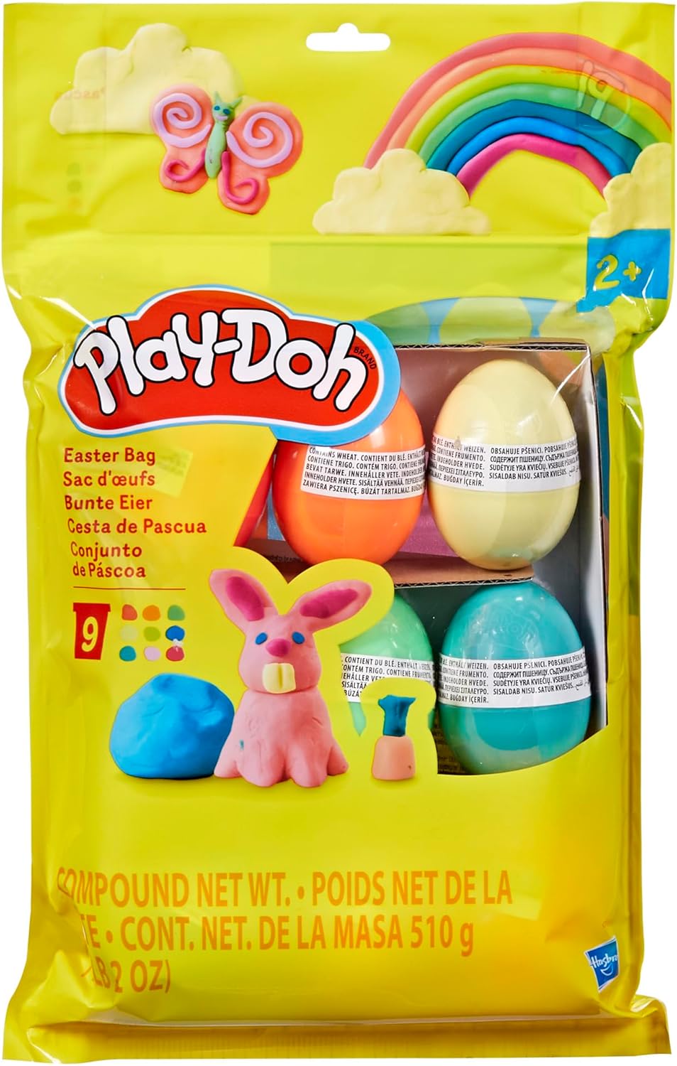 Salta nel divertimento creativo con la Sacca di Pasqua! Ispira idee fresche e creative con le 9 uova di plastica Play-Doh, ognuna piena di 56 g di pasta modellabile in 9 colori diversi. Le uova già riempite sono degli ottimi premi diversi da caramelle per le cacce alle uova di bambini e bambine o perfino come attività manuali pasquali per dare sfogo alle loro immaginazioni.