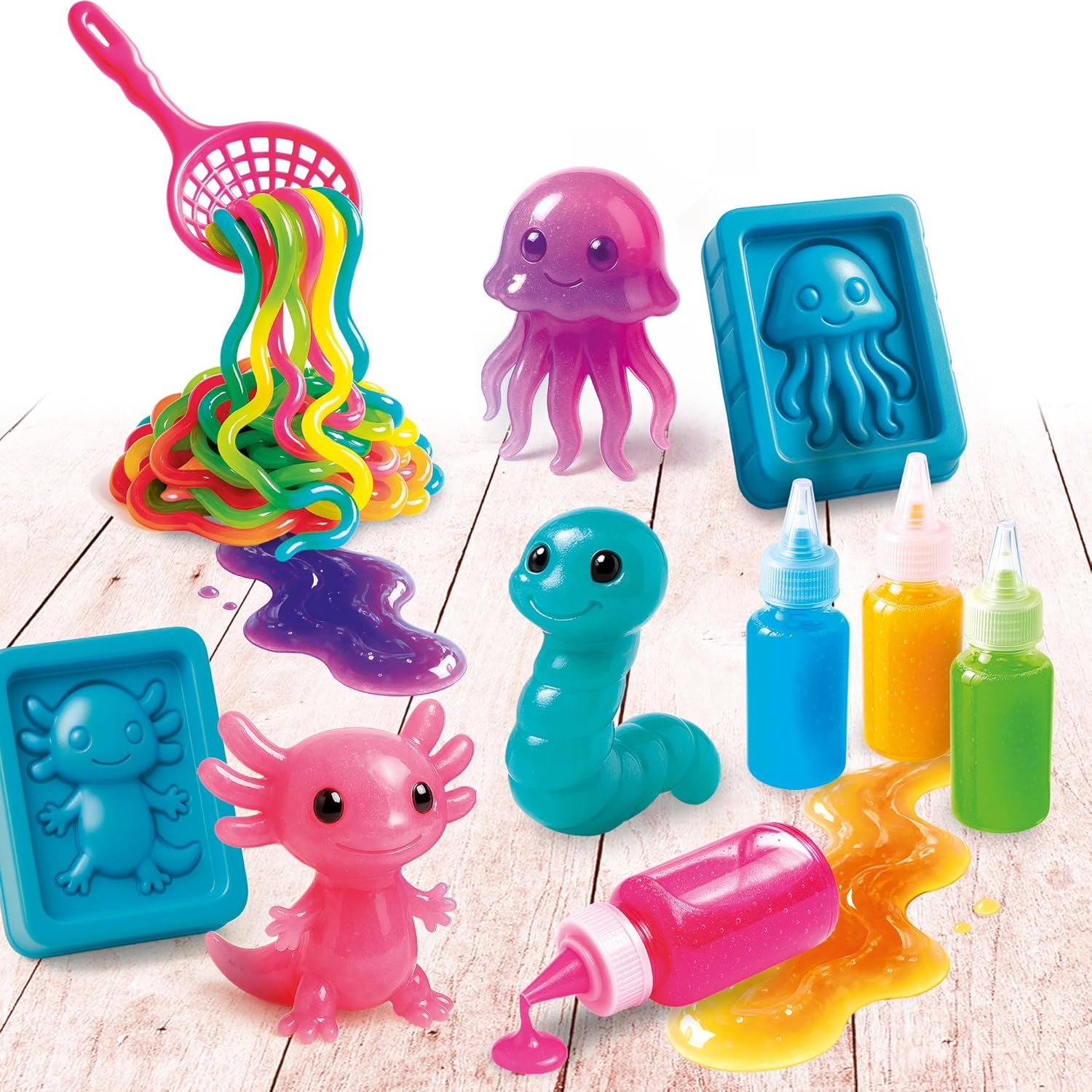 Un kit per realizzare tante creature marine in versione squishy 3D! Fai da te, facili e divertenti: basta versare la polvere magica nell’acqua, riempire gli stampi con il magico slime e immergerli in acuqa… ed ecco che in pochi minuti i tuoi water squish saranno pronti!