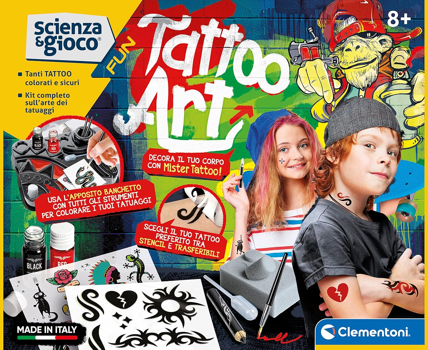 - COSA CONTIENE: laboratorio scientifico Made in Italy per bambini dagli 8 anni in su; include un banchetto da lavoro, pennelli, colori liquidi, stencil e manuale con istruzioni dettagliate per creare tatuaggi in totale sicurezza