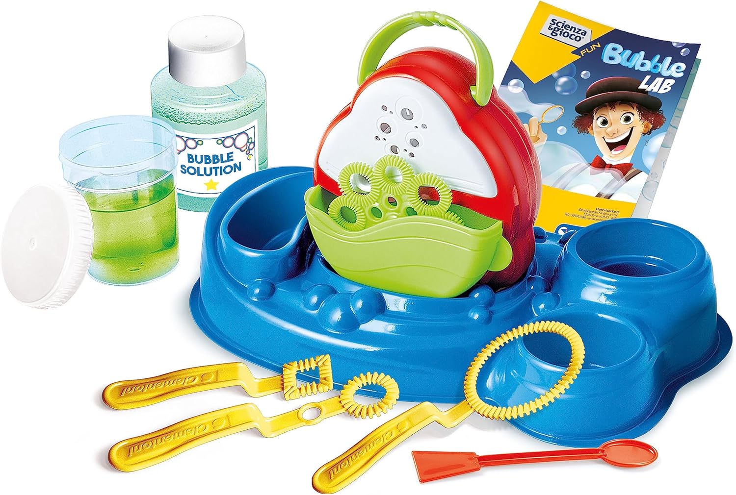 - CARATTERISTICHE: Un gioco scientifico con aspetti scientifici semplici e attività di gioco adeguate al target prescolare. Ci sono anche le istruzioni per diventare un vero giocoliere di bolle! Batterie necessarie per il funzionamento della macchina, 2 AA