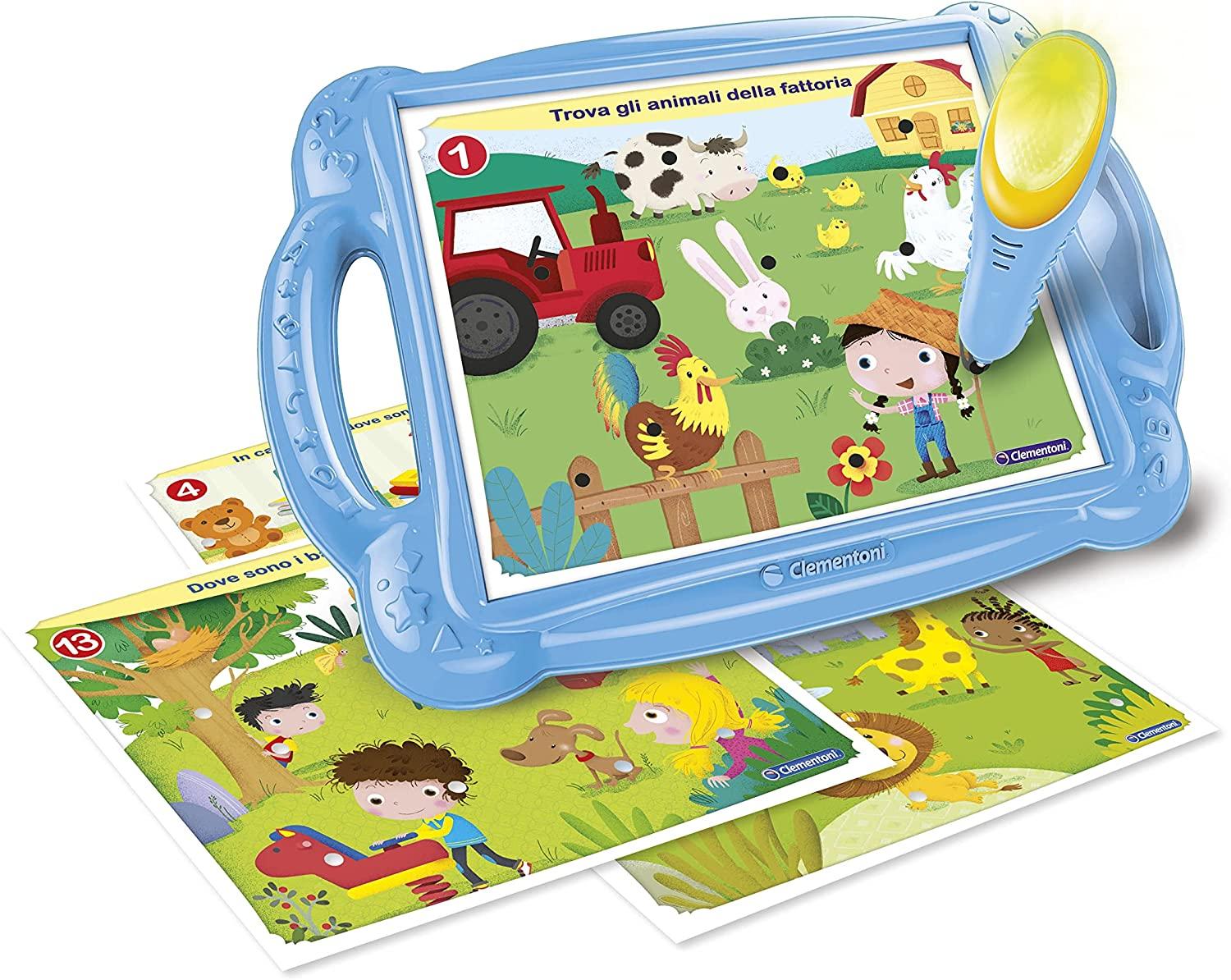 - COSA CONTIENE: gioco educativo Made in Italy adatto per bambini dai 2 ai 4 anni, include un banchetto con 12 schede interattive con 24 attività di gioco, una penna elettronica e batterie incluse per un gioco immediato e senza interruzioni