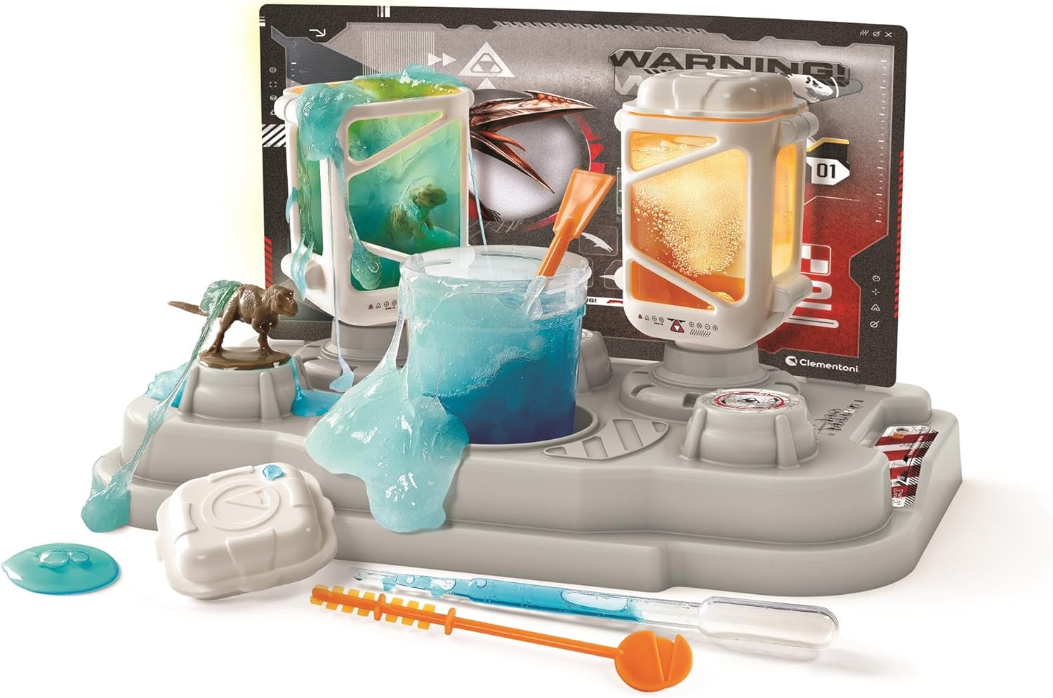 - COSA CONTIENE: gioco scientifico Made in Italy adatto per bambini da 8 anni in su, include 2 modellini di dinosauro, la riproduzione del laboratorio del film, il kit per la produzione dello slime