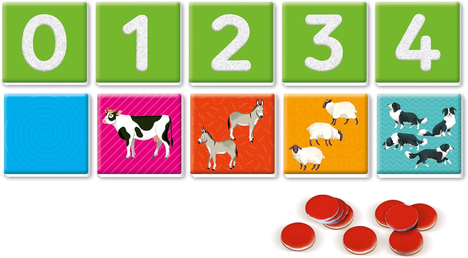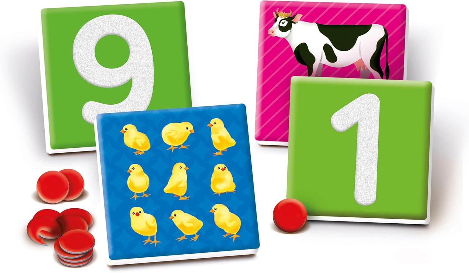 Inoltre, il gioco stimola il pensiero numerico grazie all’abbinamento tra i numeri e le tessere quantità e ai gettoni del pari e dispari.