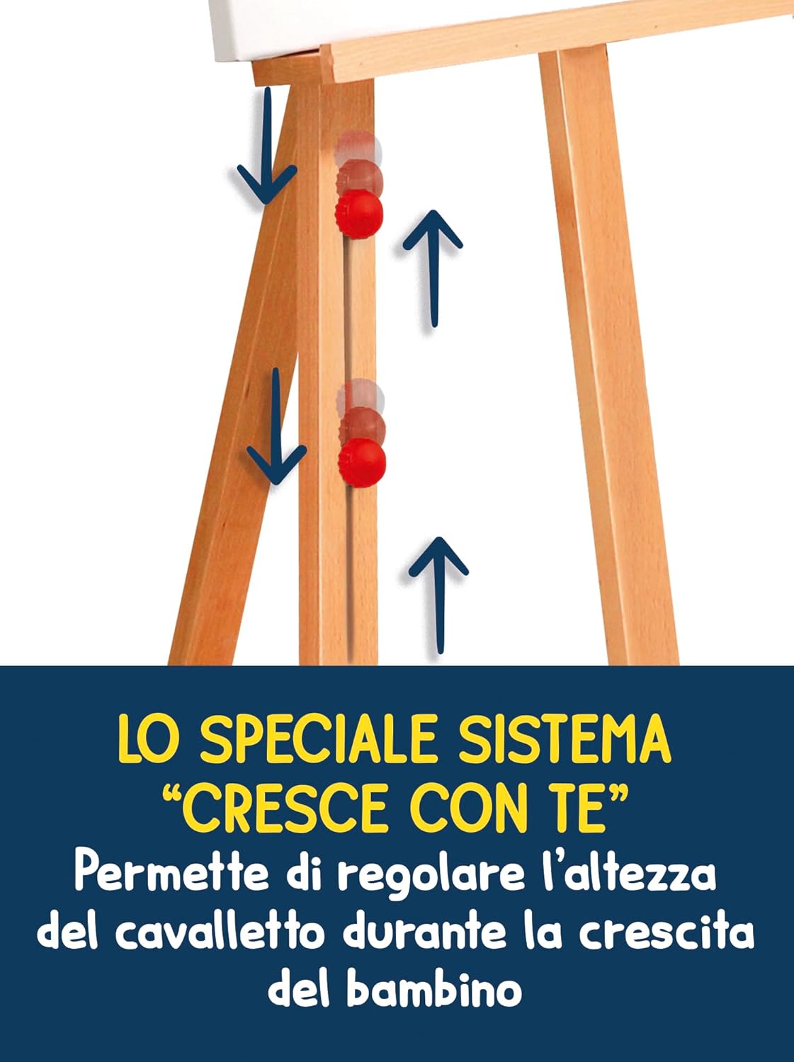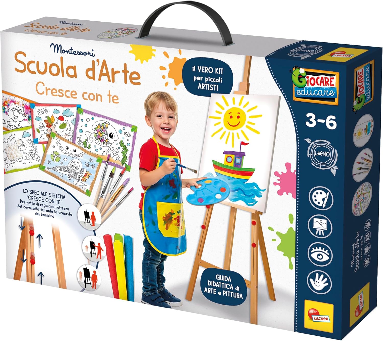 Il vero kit per piccoli artisti. Cavelletto regolabile. Guida didattica con attività creative. Tutto l’occorrente per dipingere e disegnare. Cavaletto, Tela, Schede attività, Pennelli, Acquerelli, Fogli di carta pesta, Guida didattica. Coordinazione occhio mano – Autonomia -Pensiero creativo.