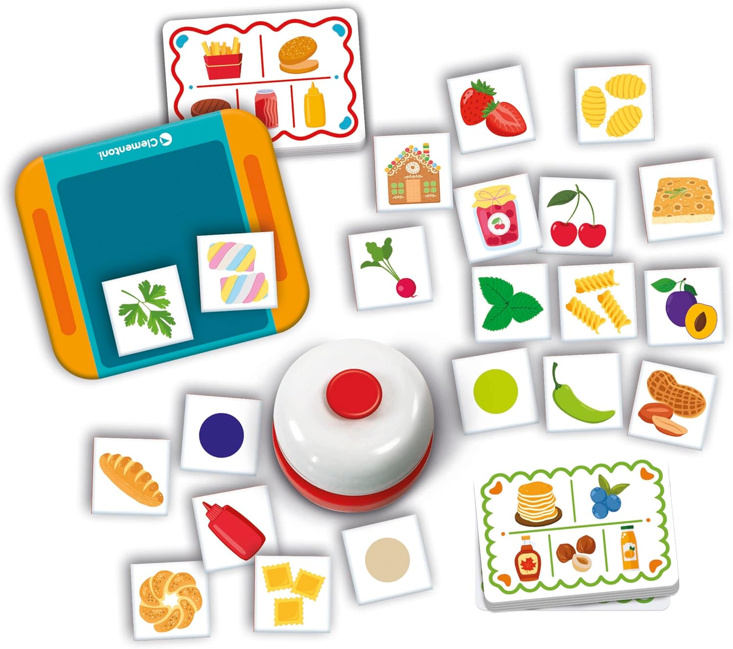 Un gioco educativo coinvolgente per allenare prontezza e capacità di osservazione visiva attraverso la scoperta di 250 soggetti alimentari da classificare e ordinare nel ristorante più caotico del mondo. Le attività proposte stimolano la memoria visiva e la capacità di categorizzazione degli alimenti, permettendo di scoprire i diversi gruppi nutrizionali come frutta, verdura, carne e pesce in modo attivo e divertente. Grazie a diverse modalità di gioco, i partecipanti si sfidano a individuare il cibo o la bevanda corretta per completare l’ordinazione sul proprio vassoio prima degli altri e suonare la campanella per vincere la partita; da 1 a 4 giocatori. Gioco made in Italy, per bambini dai 5 anni in su, la scatola include 250 tesserine illustrate, 50 carte ordinazione, 4 vassoi colorati, 1 campanella e istruzioni di gioco.
