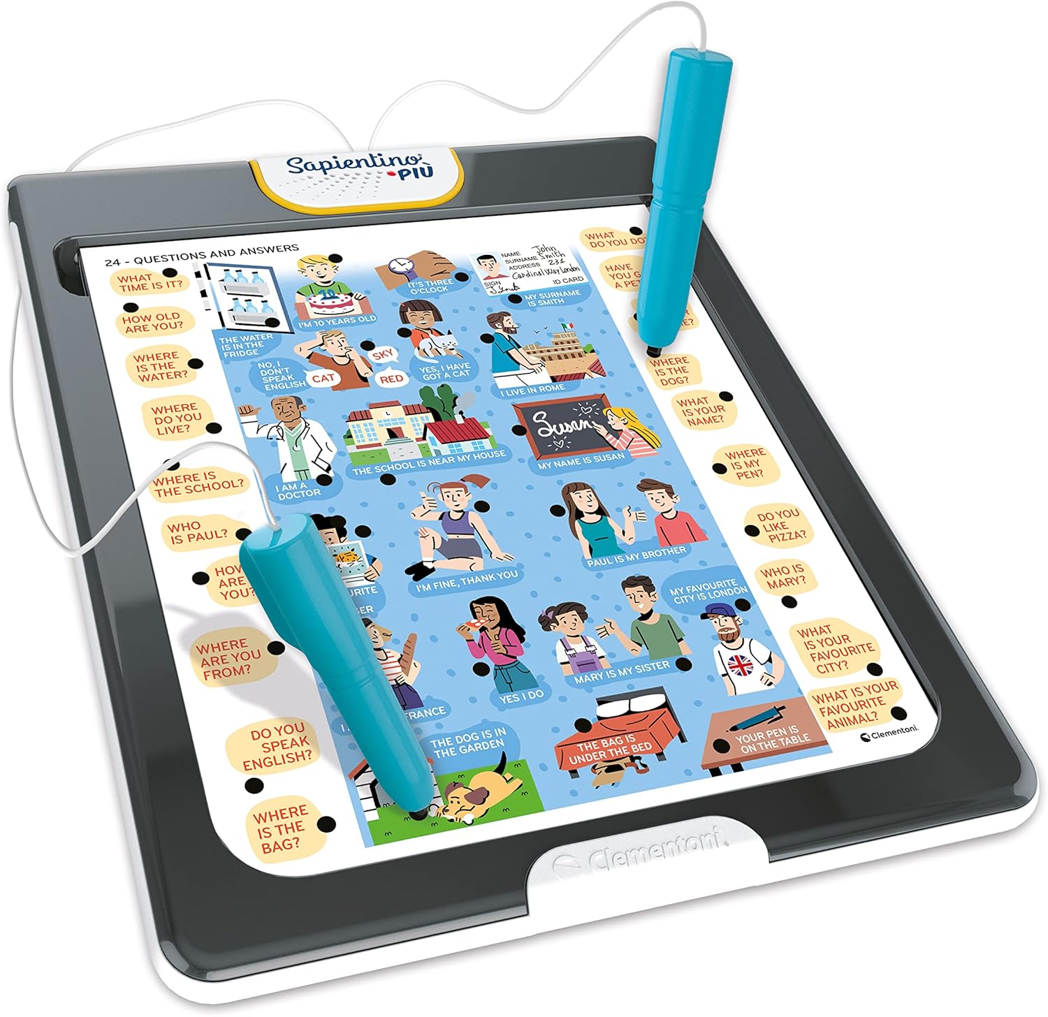 • SAPIENTINO INGLESE: gioco educativo con penne interattive che aiutano i bambini a scoprire l’inglese in modo divertente; un vero dizionario con oltre 480 parole tra nomi, avverbi e aggettivi, per imparare la lingua inglese attraverso attività coinvolgenti