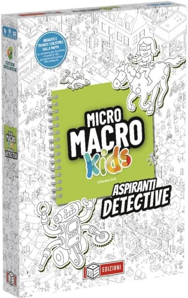 MicroMacro Kids: Aspiranti Detective è la versione pensata per bambini e famiglie del pluripremiato gioco da tavolo MicroMacro: Crime City. In questa edizione speciale, i casi sono adatti ai più piccoli, ma richiedono comunque attenzione ai dettagli, spirito di osservazione e deduzione logica per essere risolti.