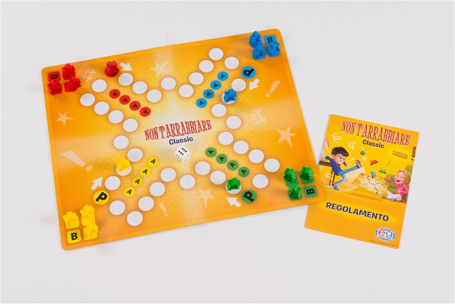 Il più classico dei giochi in scatola, dove dovrete dimostrare nervi saldi e tanta determinazione! Lo scopo del gioco è di far procedere i propri segnalini dalla casa-base fino alla propria base di arrivo, procedendo in senso orario lungo un percorso fatto di caselle in ragione dei punti ottenuti lanciando il dado. La peculiarità del gioco, dalla quale nasce il nome, è quella di poter “mangiare” in qualsiasi momento della partita, un segnalino avversario se si atterra sulla casella dove si trova, e rispedire il giocatore al punto di partenza, costringendolo a ricominciare, e provocando in genere una reazione di stizza.