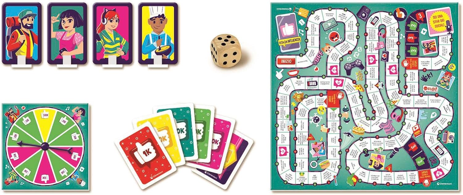 - COME GIOCARE: lancia il dado, muovi la pedina e affronta le sfide che ti portano a collezionare like, evitare imprevisti e raggiungere la vetta della popolarità; vince chi accumula più follower senza perdere il proprio pubblico