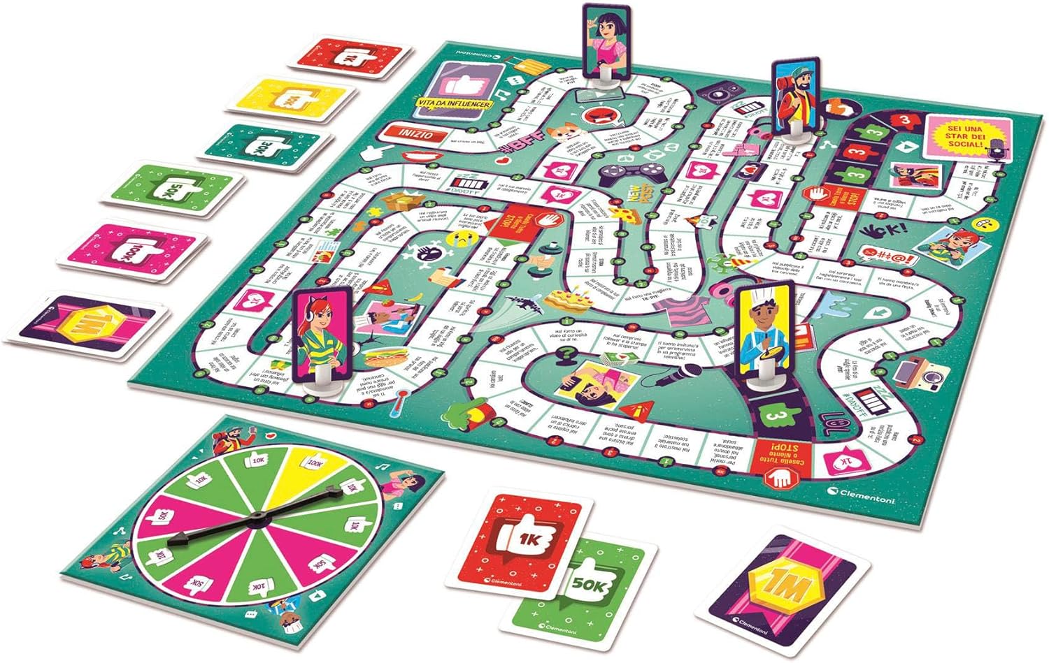 - COSA CONTIENE: gioco Made in Italy consigliato dai 6 anni in su, include 1 tabellone, 4 pedine, 1 dado, 1 spinner, 198 carte divise per livello e 1 regolamento; tutto il necessario per vivere la tua avventura da influencer