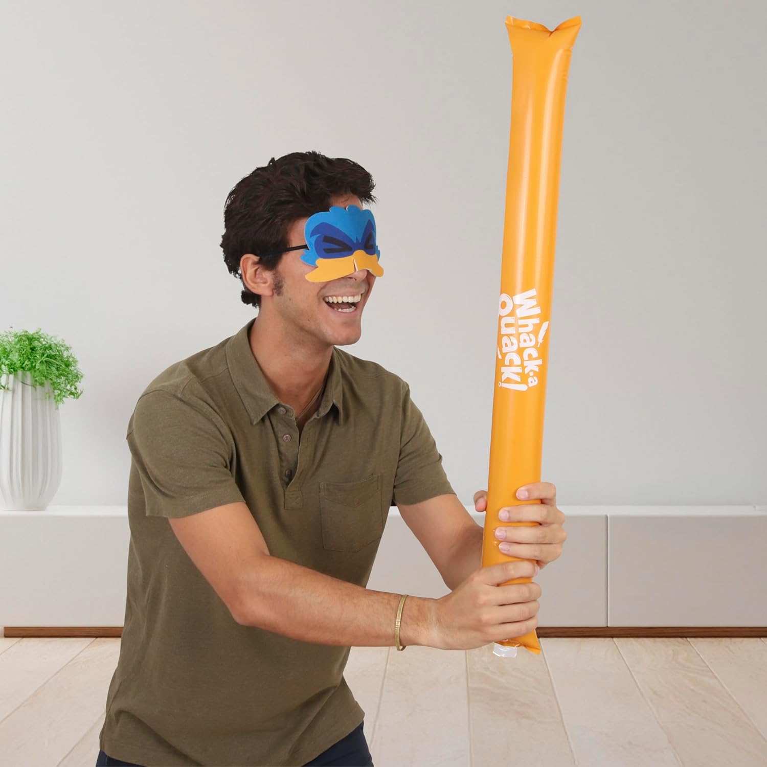 - COSA C’È NELLA SCATOLA? Il gioco include 1 maschera da papera, 1 mazza gonfiabile, 6 fischietti da papera e 4 uova.