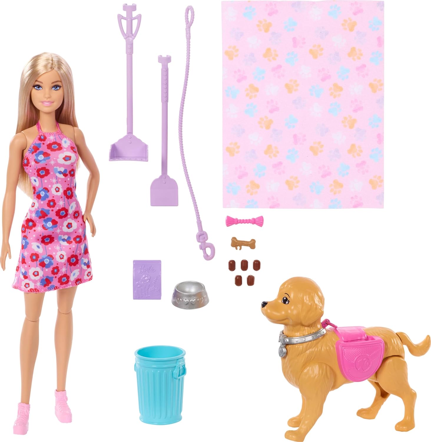 - Barbie è pronta per una divertente passeggiata con il suo cucciolo che cammina e fa la pupù!