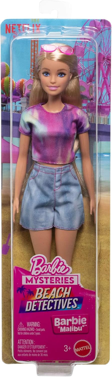 - Ispirata a Barbie Mysteries: Beach Detectives, la bambola Barbie ‘Malibu’ dà vita all’amato personaggio per ricreare scene e inventare nuove storie!