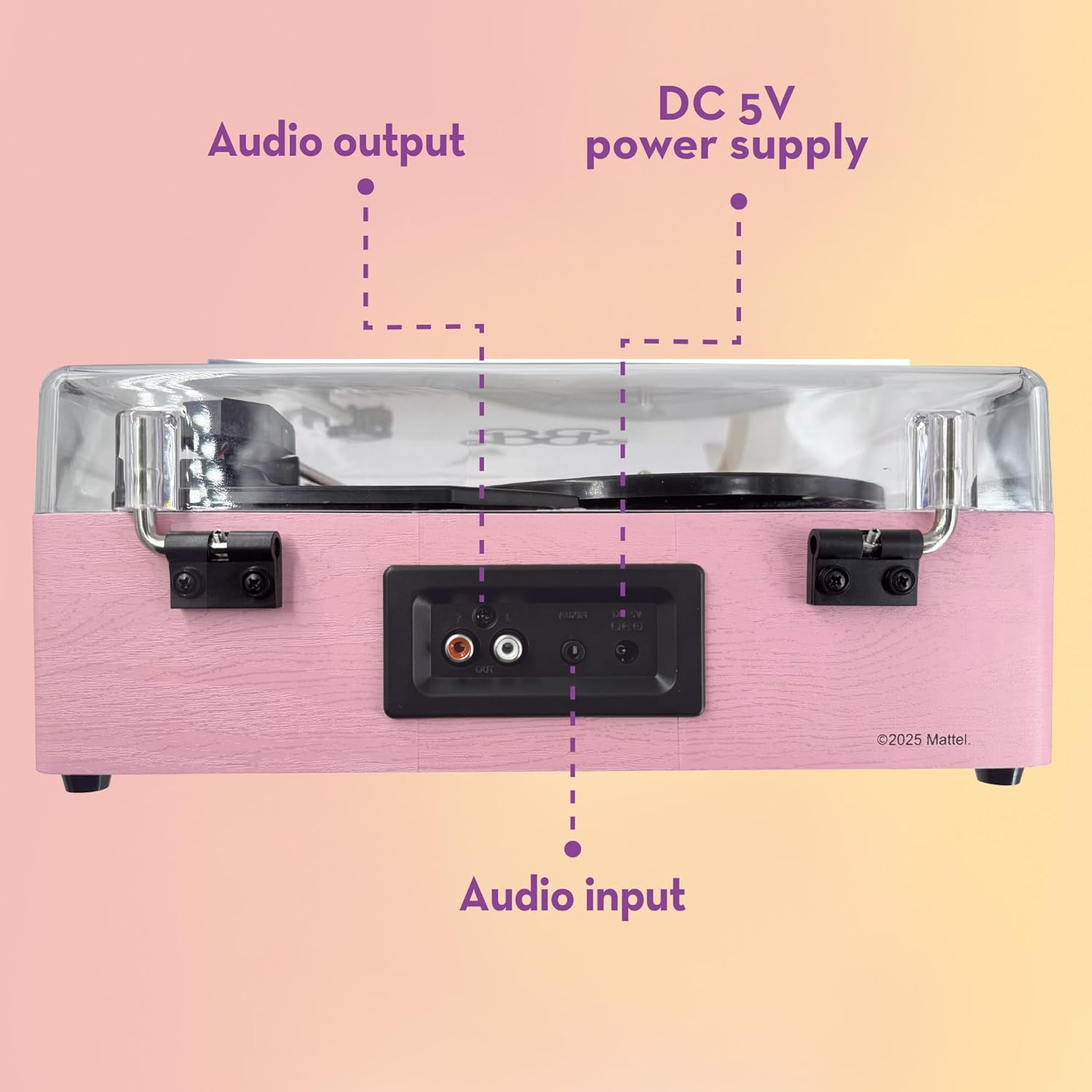 Rivivi il fascino del vinile con il giradischi Barbie che unisce nostalgia e modernità in un design elegante, perfetto per chi ama la musica e lo stile senza tempo. Metti un disco e viaggia nel tempo! Giradischi in legno- ingresso AUX- alto parlante integrato- 3 velocità di riproduzione.