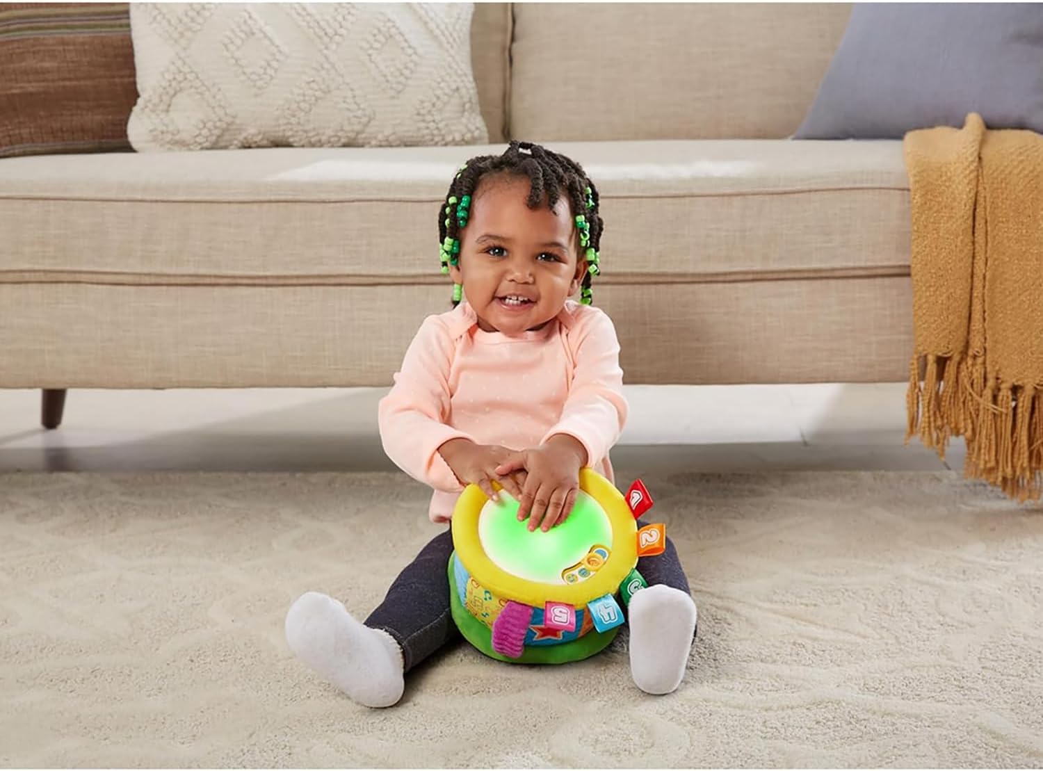 Grazie al Magico tamburo luminoso, il tuo bambino scopre numeri e colori in italiano e in inglese! Il tamburo si illumina seguendo il ritmo del gioco e accompagna il piccolo nei suoi primi apprendimenti. Le diverse texture e materiali stimolano il senso del tatto, mentre le canzoni e melodie sviluppano l’orecchio musicale del futuro piccolo artista. Un giocattolo educativo perfetto per favorire lo sviluppo sensoriale, linguistico e motorio.