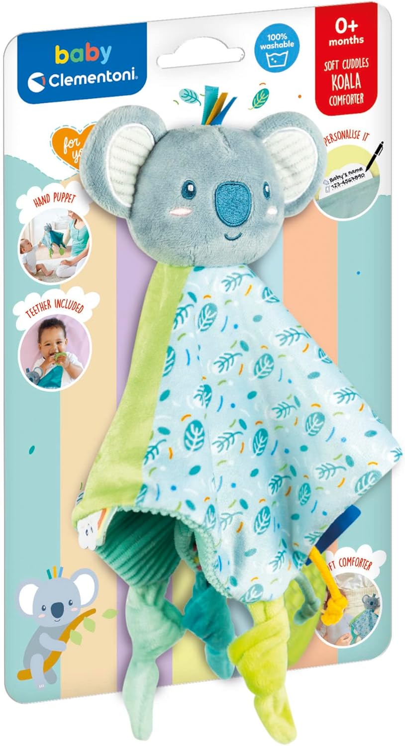 - COSA CONTIENE: gioco ideato per neonati, dotato di un comforter a forma di koala realizzato in morbido tessuto lavabile e di un dentaruolo mordicchioso