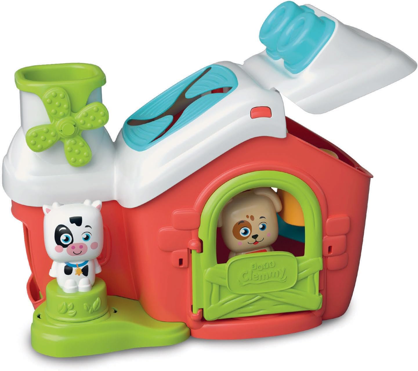 Un play set Fattoria ricco di texture in rilievo, inserti morbidi tipici della linea Clemmy, tanti mattoncini e due simpatici personaggi e attività meccaniche.