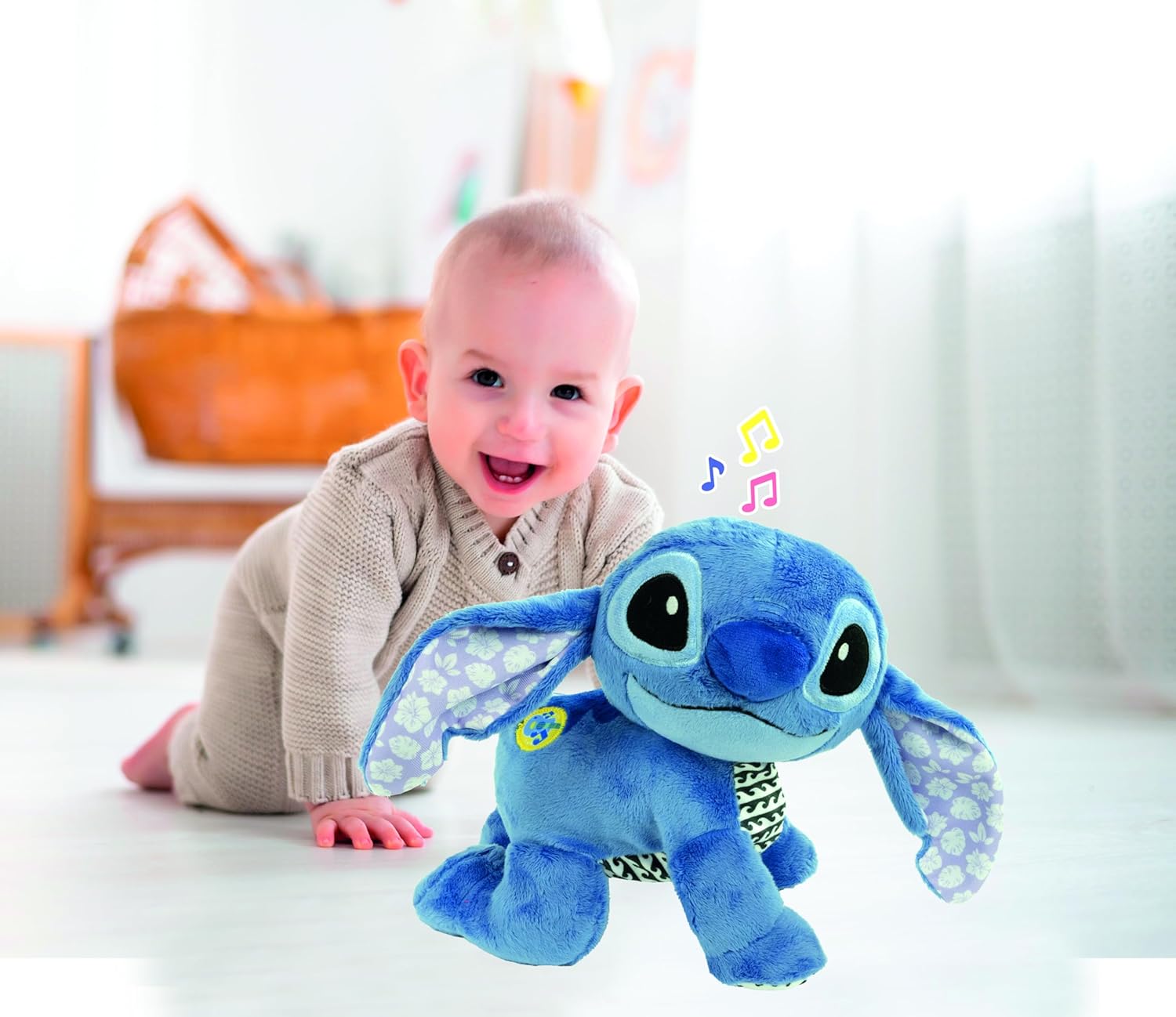 Un simpatico peluche di Stitch per insegnare ai più piccoli a gattonare e muovere i primi passi nel mondo, sviluppando le capacità motorie. Grazie al personaggio di Stitch, amato dai più piccoli, questo gioco educativo insegna al bambino a gattonare; inoltre, con i 2 tasti interattivi, i più piccoli possono imparare i primi numeri e i versi degli animali. Baby Stitch utilizza la sua voce originale per incoraggiare il bambino a gattonare; il centro attività con i 2 bottoni insegna ai più piccoli i primi numeri e i suoni degli animali. Gioco interattivo ideato, progettato e sviluppato in Italia, per bambine e bambini dai 6 ai 36 mesi, con batterie incluse per un gioco immediato e senza interruzioni. Una collezione di giochi caratterizzati da musiche e personaggi dei classici Disney, per immergere i bambini in un ambiente familiare, favorendo l’esplorazione del movimento, la manualità e l’espansione della fantasia.