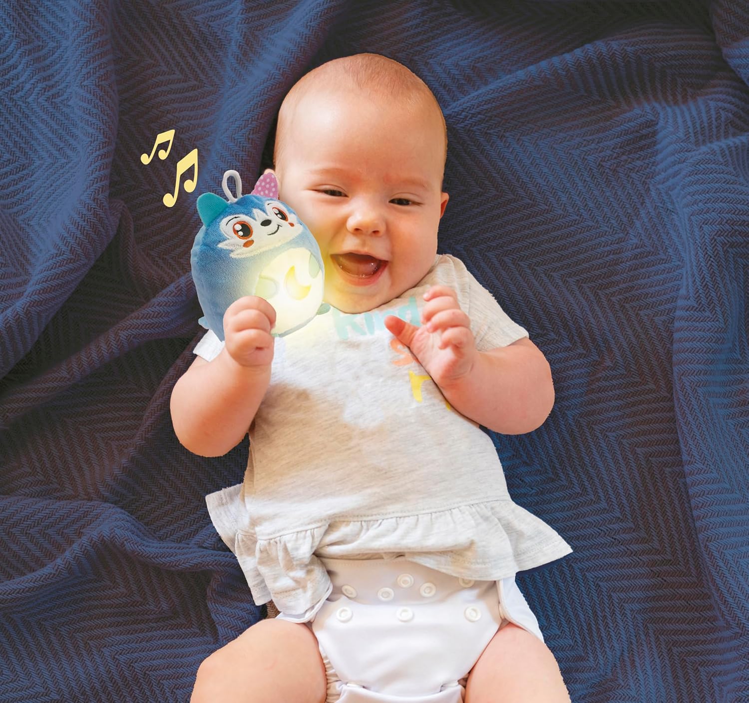 Un lupetto che fa da lampada notturna per neonati e crea un ambiente rilassante intorno al bambino, con luci soffuse e melodie calmanti per favorire il sonno sereno; ideale per i momenti pre-nanna e durante la notte. Luci e suoni sono pensati per diventare parte del rituale della buonanotte; la musica classica e i suoni white noise aiutano a calmare il bambino, riducendo la sovrastimolazione e creando un ambiente accogliente e tranquillo. Il peluche è dotato di una luce notturna calda e 10 minuti di melodie rilassanti e suoni bianchi per rilassare il bambino e accompagnarlo nella nanna. Gioco ideato, progettato e sviluppato in Italia per i più piccoli, con luce soffusa e suoni rilassanti, 100% lavabile in lavatrice rimuovendo il modulo elettronico all’interno.