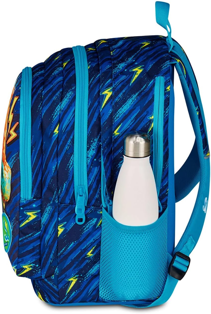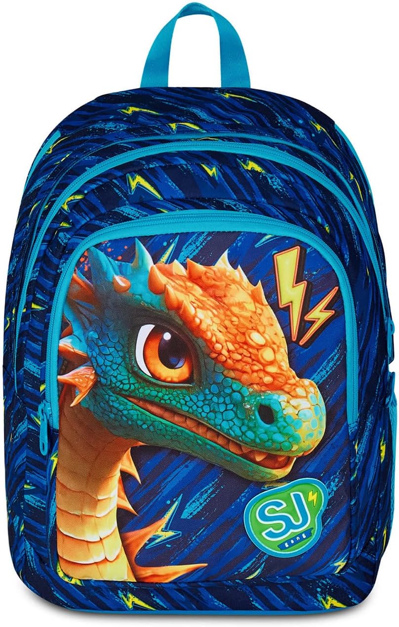 Ciao! Sono il sorprendente zaino Advanced SJ GANG dotato di MAXI INSERTI stampati estraibili dai taschini laterali per trasformarmi in un DRAGO ALATO, pronto ad accompagnarti a scuola in modo divertente e spensierato! Lo schienale e gli spallacci di cui sono dotato mi rendono comodo da indossare sulle spalle, mentre il fondo integrato permette alla mia struttura di rimanere inalterata anche a pieno carico. Nel mio ampio doppio scomparto c’è posto per tutto quello che ti serve durante la giornata e ho anche una tasca laterale dove puoi mettere la tua borraccia.