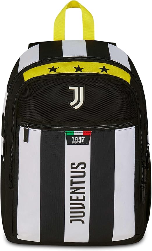 Lo zaino Doppio Scomparto JUVENTUS è perfetto per i carichi maggiori. Lo schienale e gli spallacci imbottiti danno grande comodità quando sta sulle spalle e il contenuto resta stabile al suo interno.