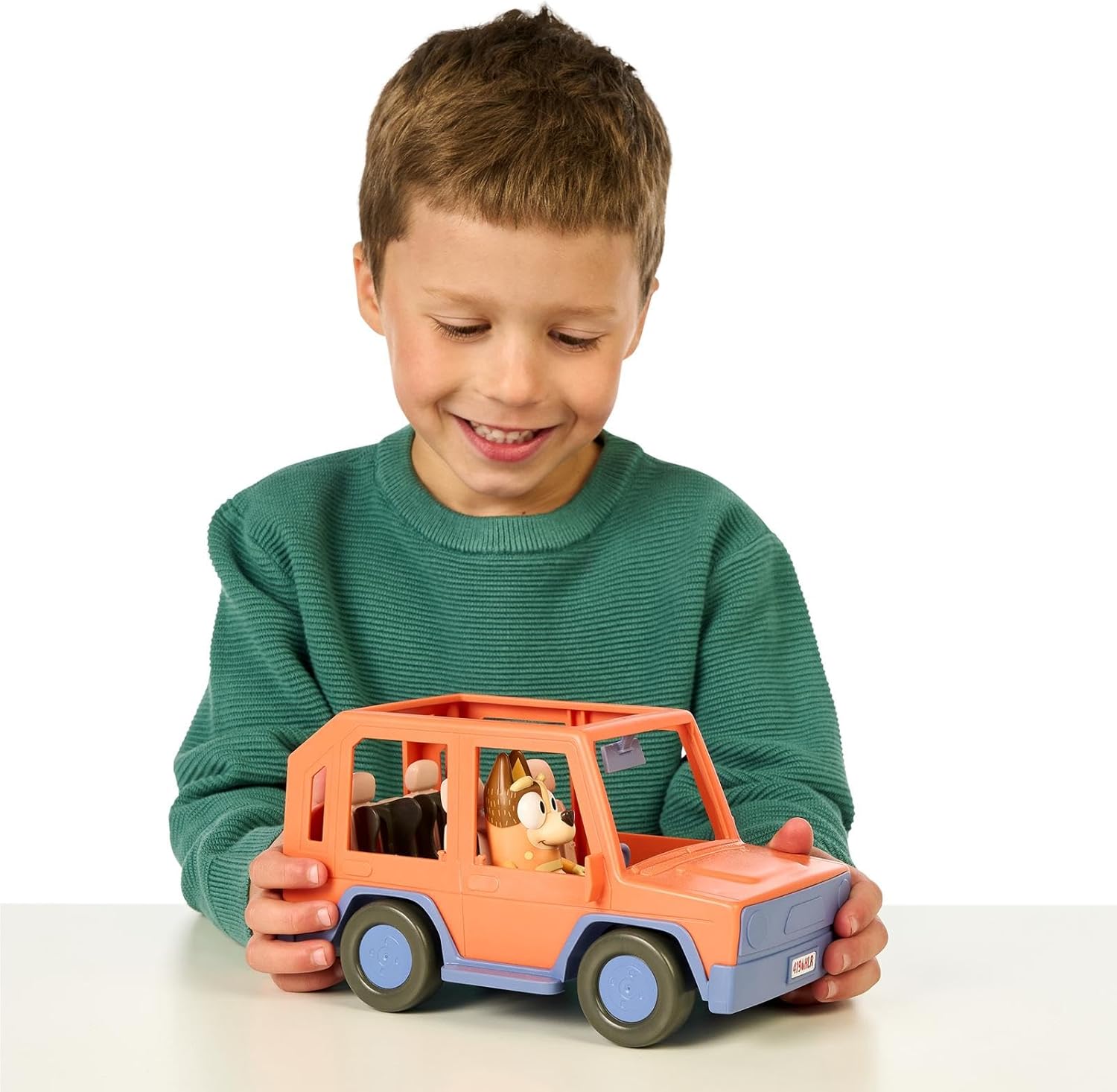 Porta tutta la famiglia di Bluey a fare un giro con la Jeep! È l’auto perfetta per vivere divertenti avventure! Inclusa nella confezione, troverai Chilli, pronta a mettere in moto! La jeep può ospitare fino a quattro personaggi… perfetta per una gita fuori porta!