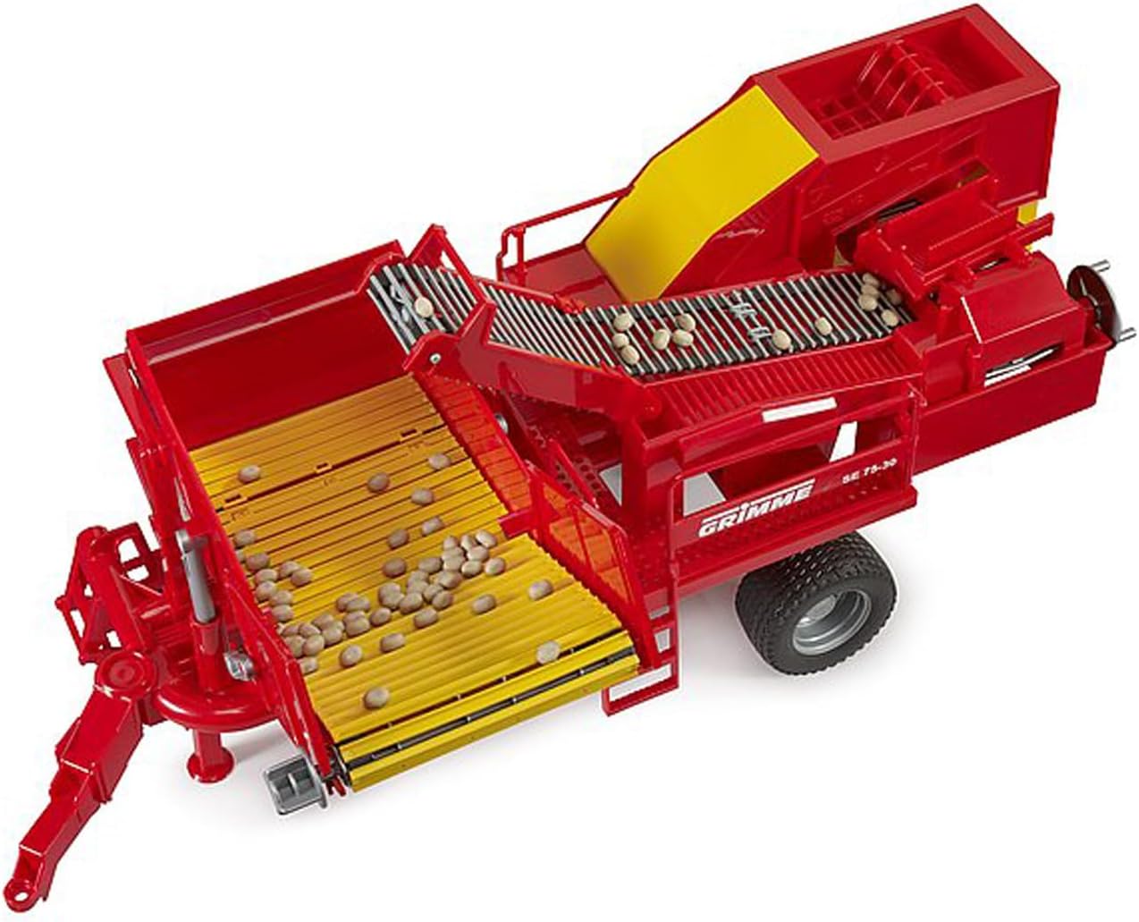 La raccoglitrice di patate Grimme SE 75-30 di Bruder è modellata fedelmente sull’originale e prodotta in scala 1:16. La raccoglitrice di patate ha un supporto sicuro grazie a un piede di sostegno pieghevole. Le patate finte, incluse nella fornitura, vengono trasportate nel bunker attraverso il nastro di pulizia e raccolta azionando la manovella. Il bunker è inoltre regolabile in altezza e il nastro di scarico può essere ripiegato. I pneumatici tassellati completano il quadro. Per un maggiore divertimento, la raccoglitrice di patate Grimme può essere abbinata a tutti i trattori della serie Profi.