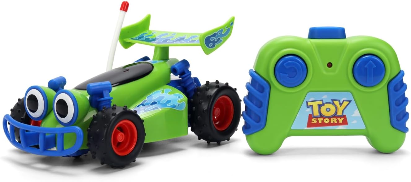 Auto telecomandata Toy Story facile da usare Buggy ispirato al film con design divertente e colori accattivanti che affascinano i bambini e i fan dell’universo Pixar. L’auto si sposta dritto in avanti e indietro ruota automaticamente, perfetto per imparare a guidare fin dal primo utilizzo. Giocattolo ideale per bambini dai 2 anni che aiuta a sviluppare la coordinazione occhio-mano, le capacità motorie e l’orientamento spaziale durante il gioco. Prodotto ufficiale Disney Pixar di Jada Toys. Include auto e controller, produzione di qualità e design resistente, ideale come regalo per compleanno, Natale o fan di Toy Story.